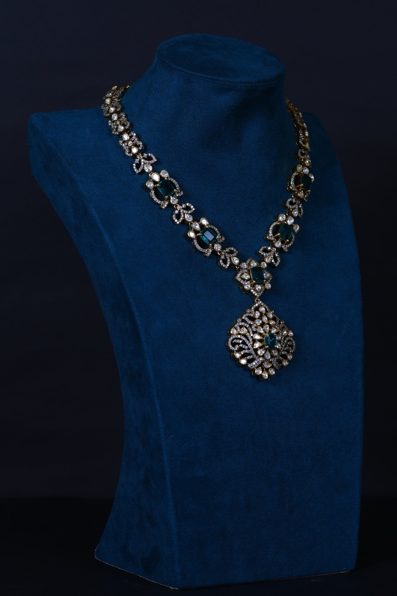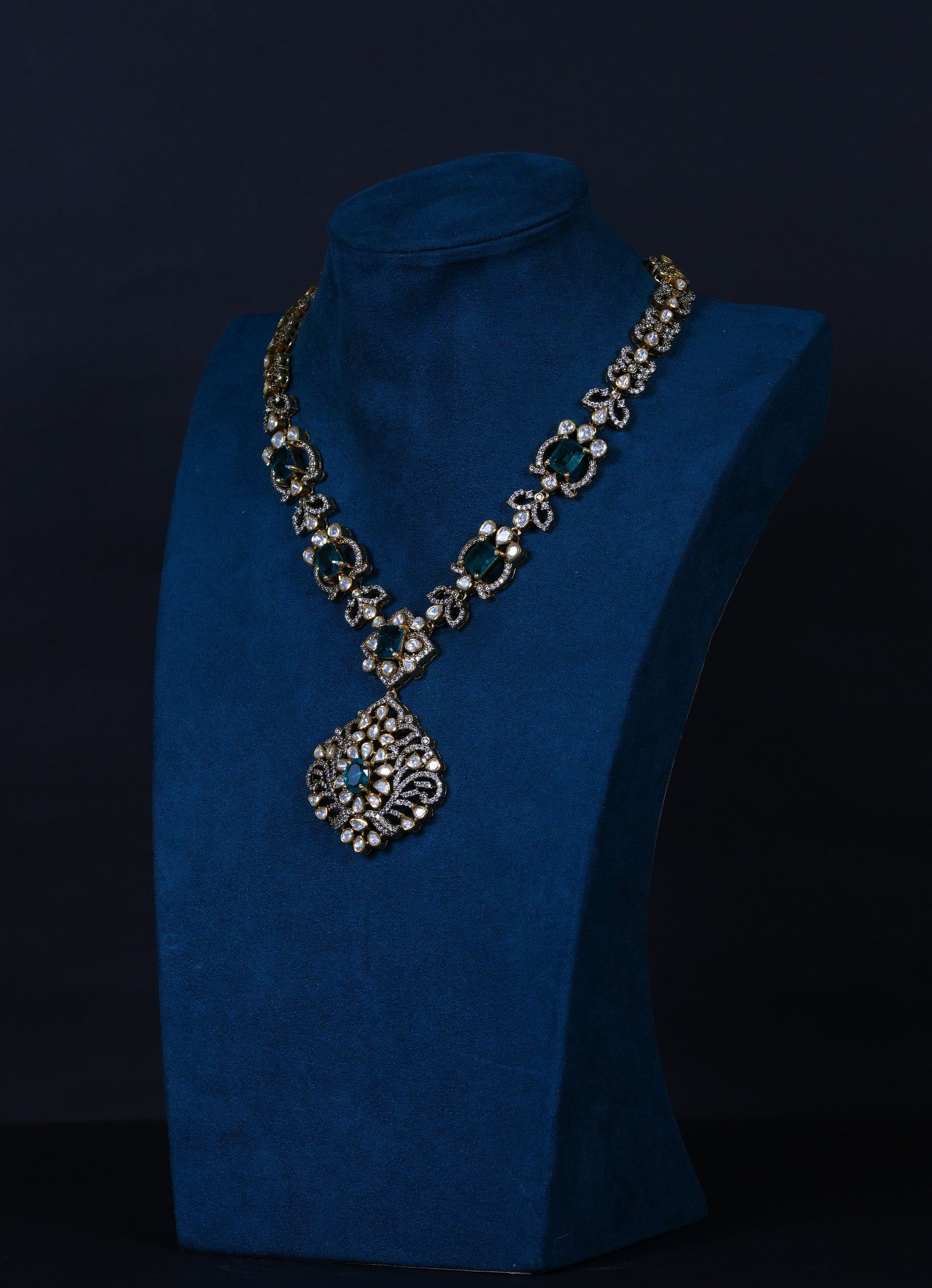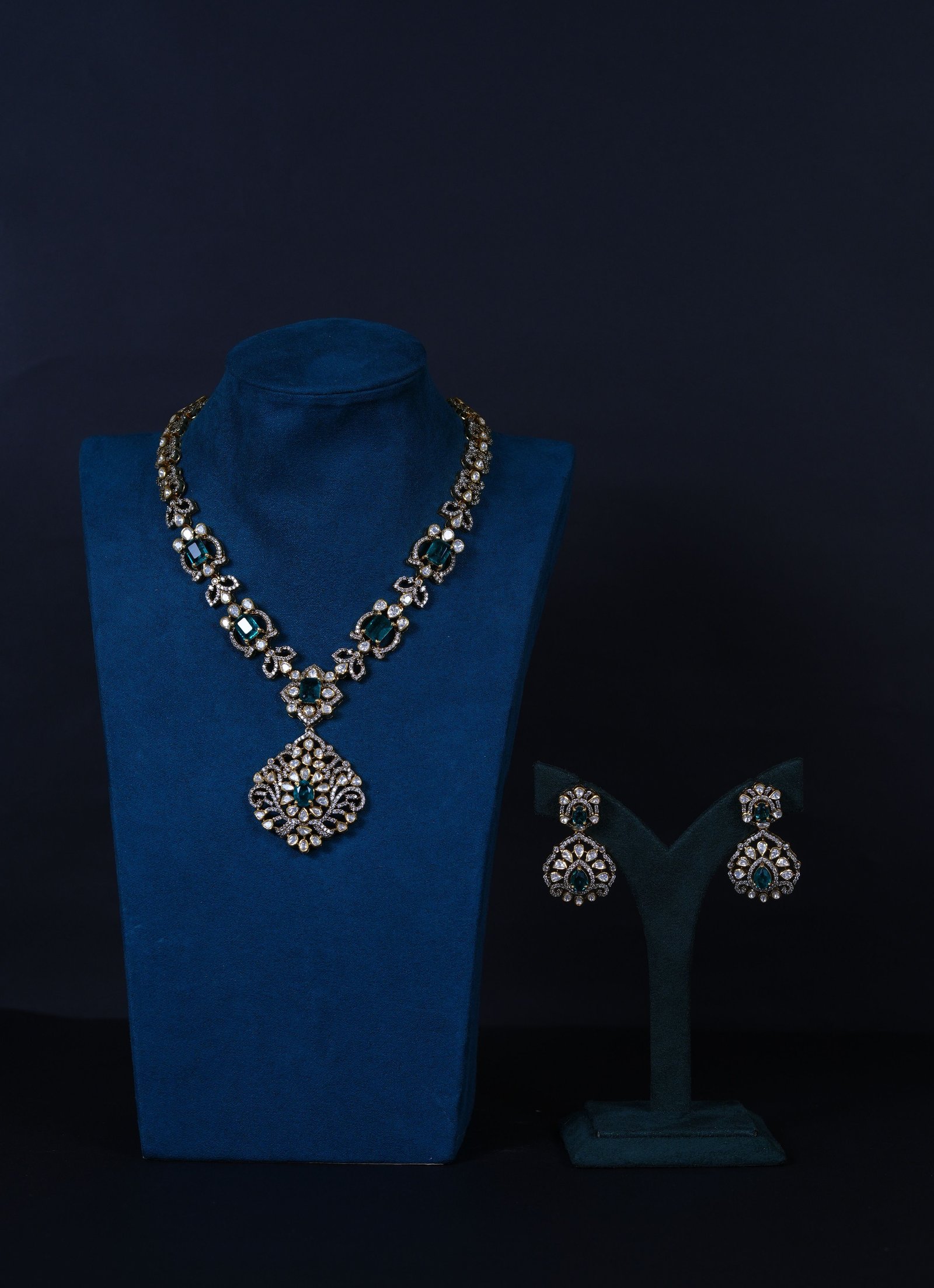 Elegant Emerald Moissanite necklace and earrings set crafted in 92.5 sterling silver. A graceful blend of rich emerald tones and brilliant sparkle, perfect for weddings and special occasions.