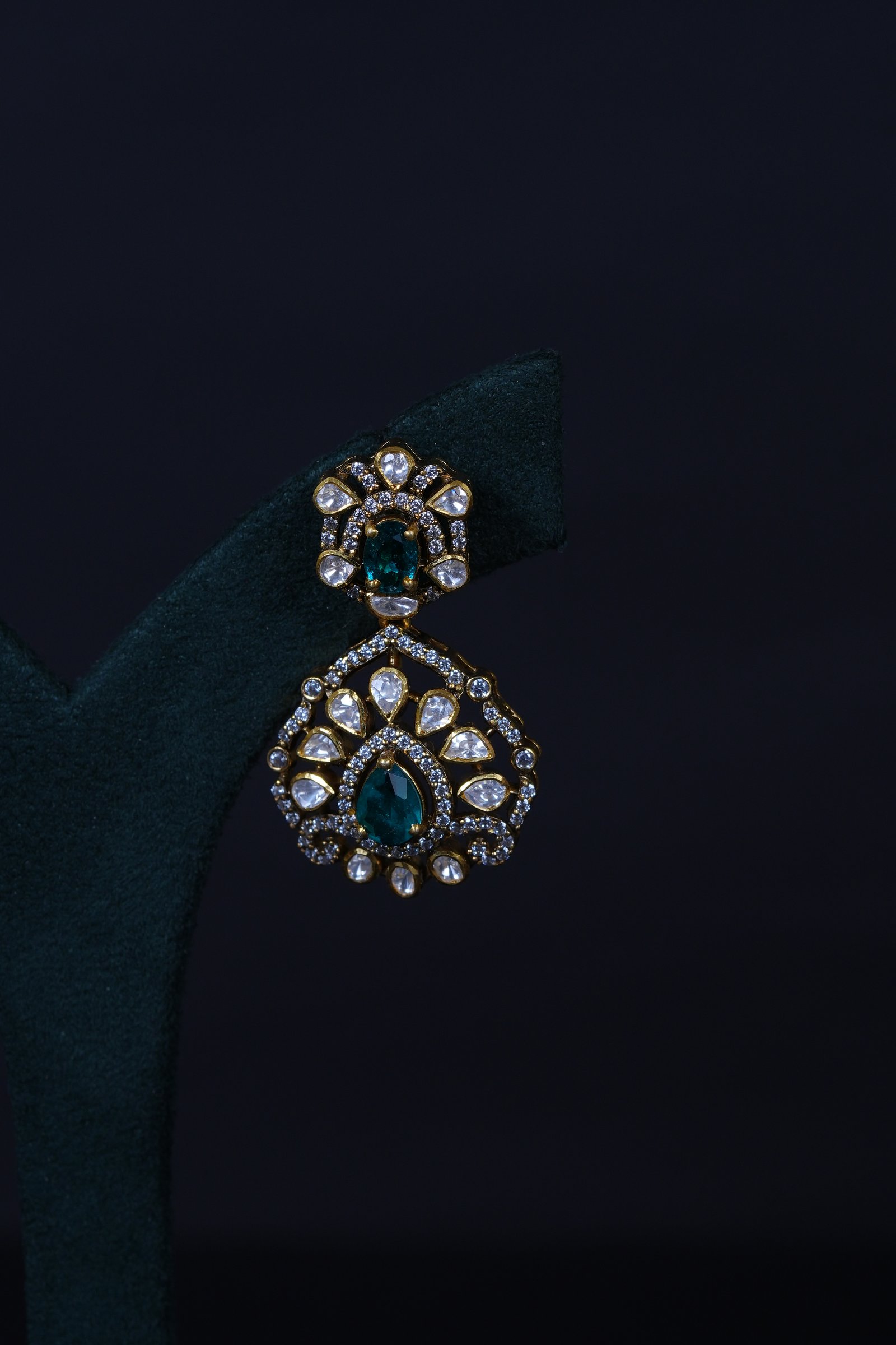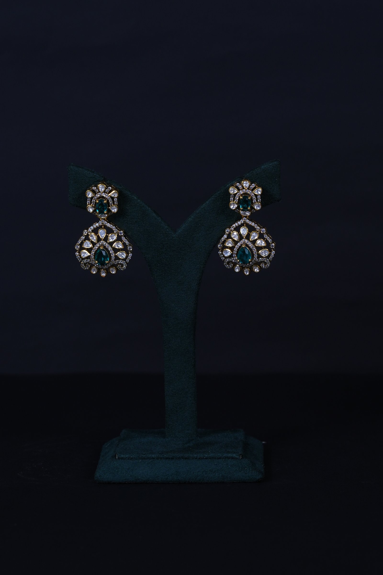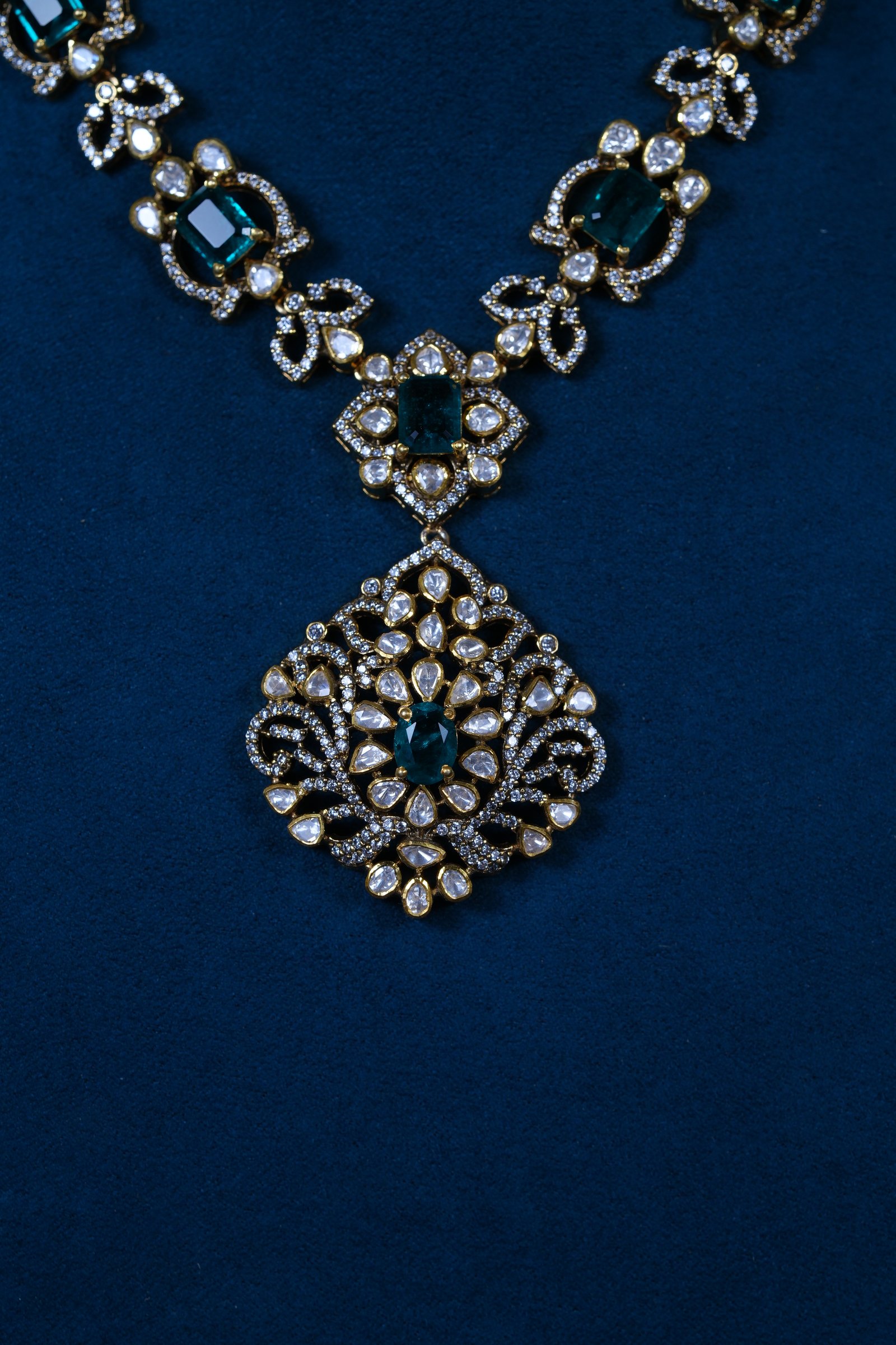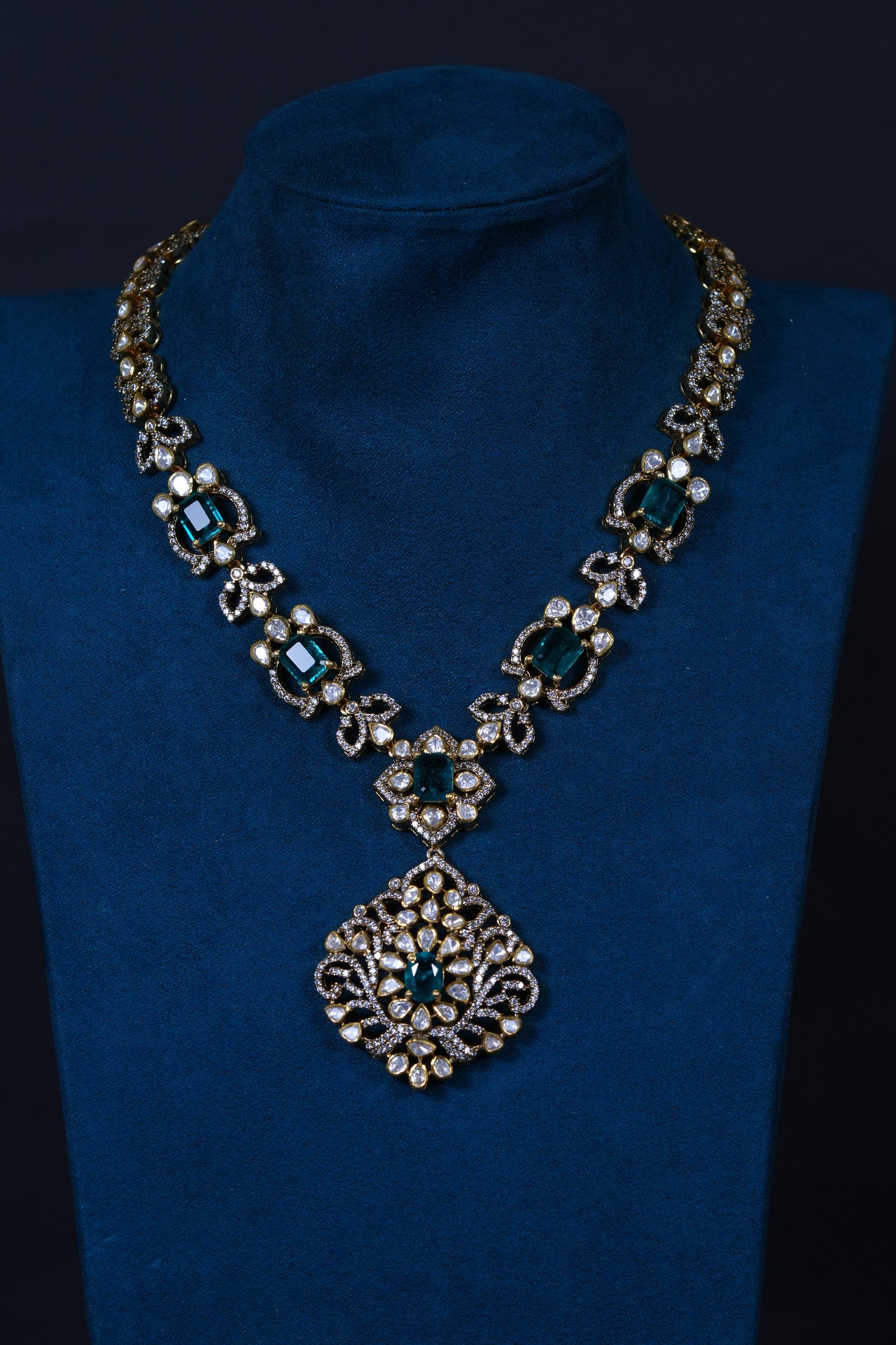 Elegant Emerald Moissanite necklace and earrings set crafted in 92.5 sterling silver. A graceful blend of rich emerald tones and brilliant sparkle, perfect for weddings and special occasions.