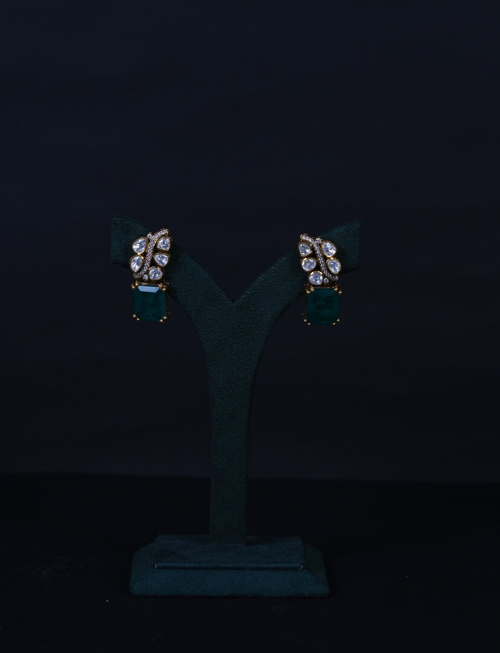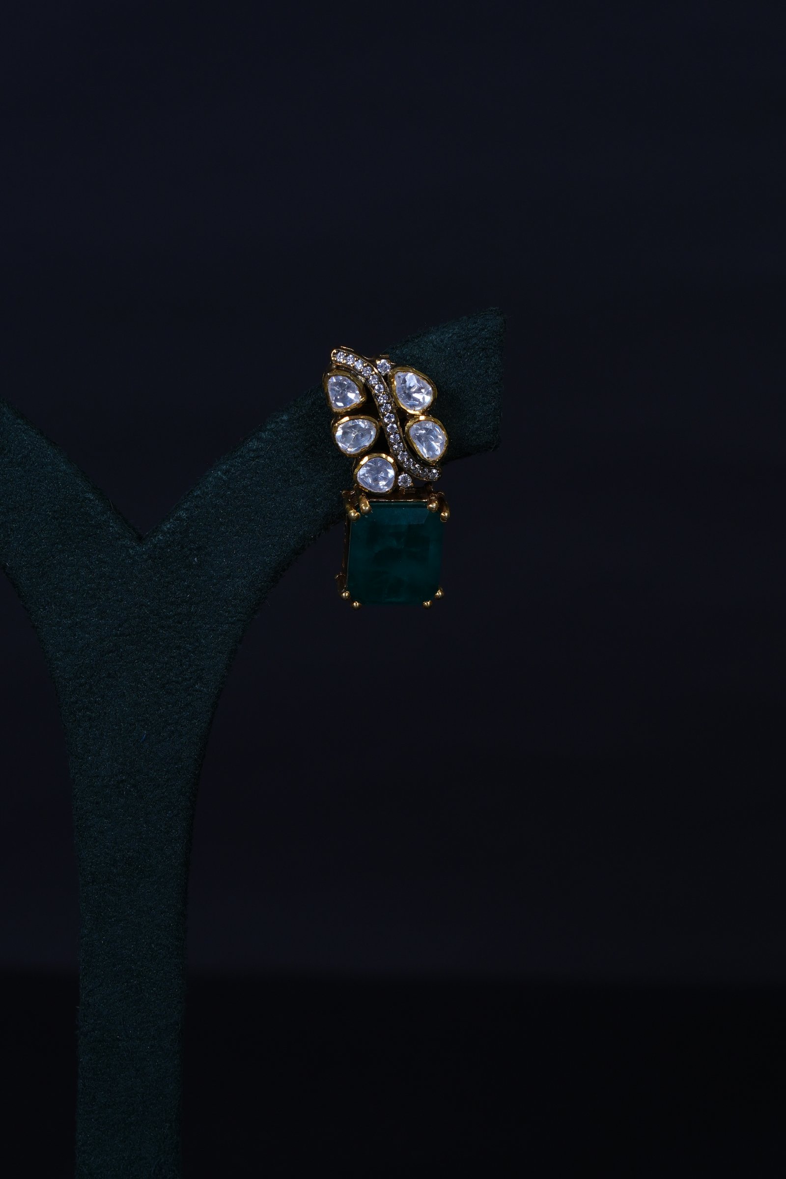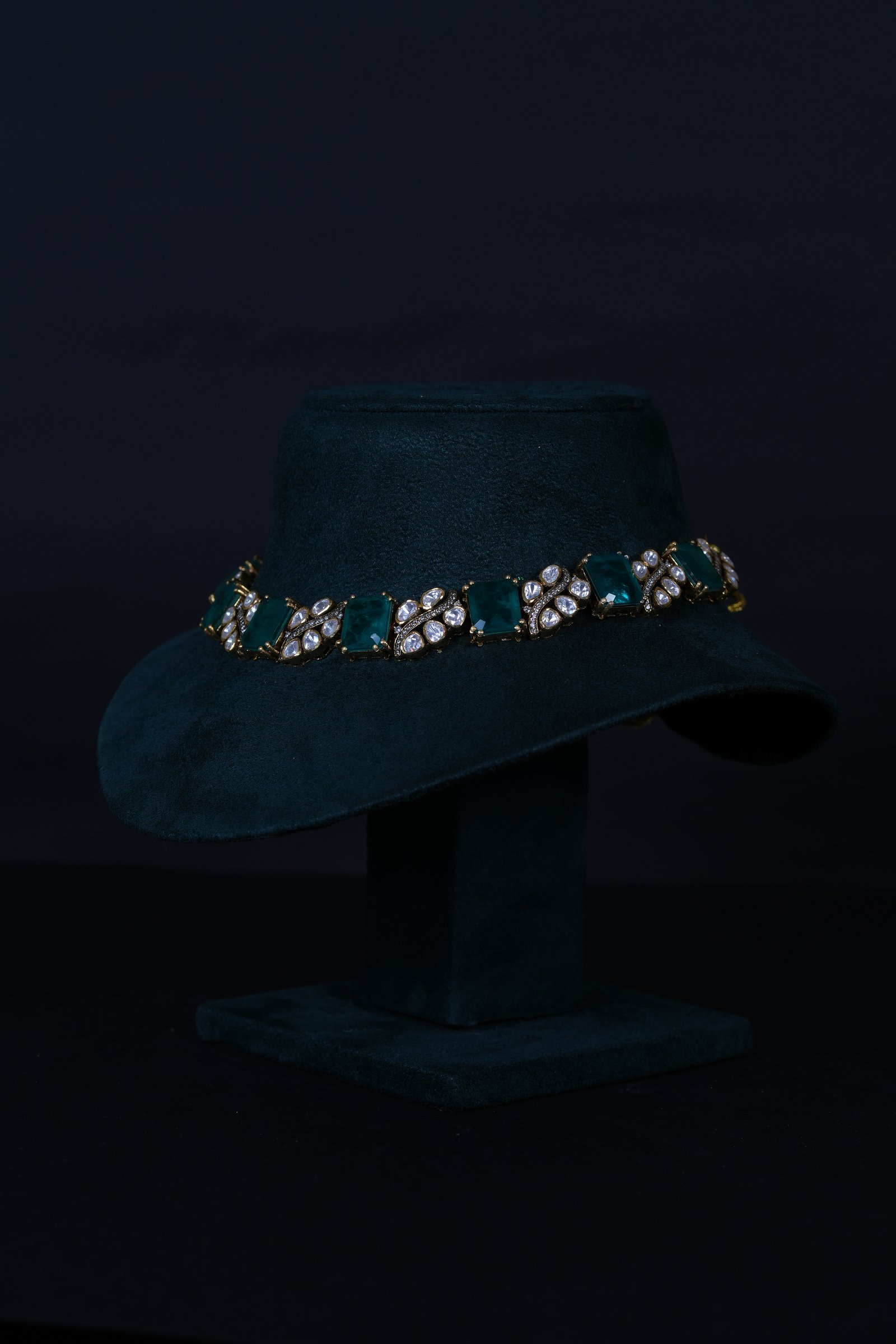 Imperial Russian Emerald Polki necklace set crafted in 92.5 sterling silver. A regal statement design blending rich emerald tones with classic Polki elegance.