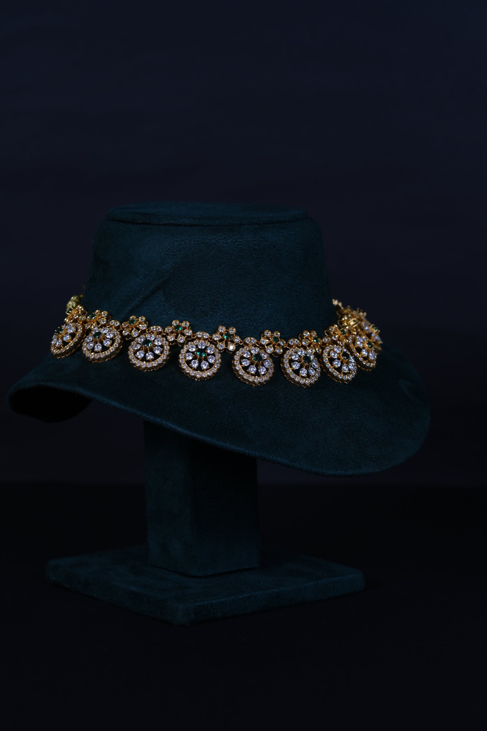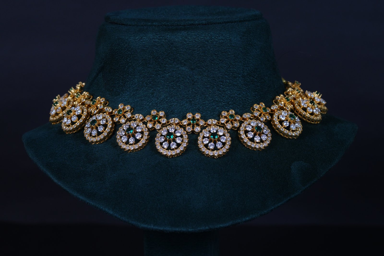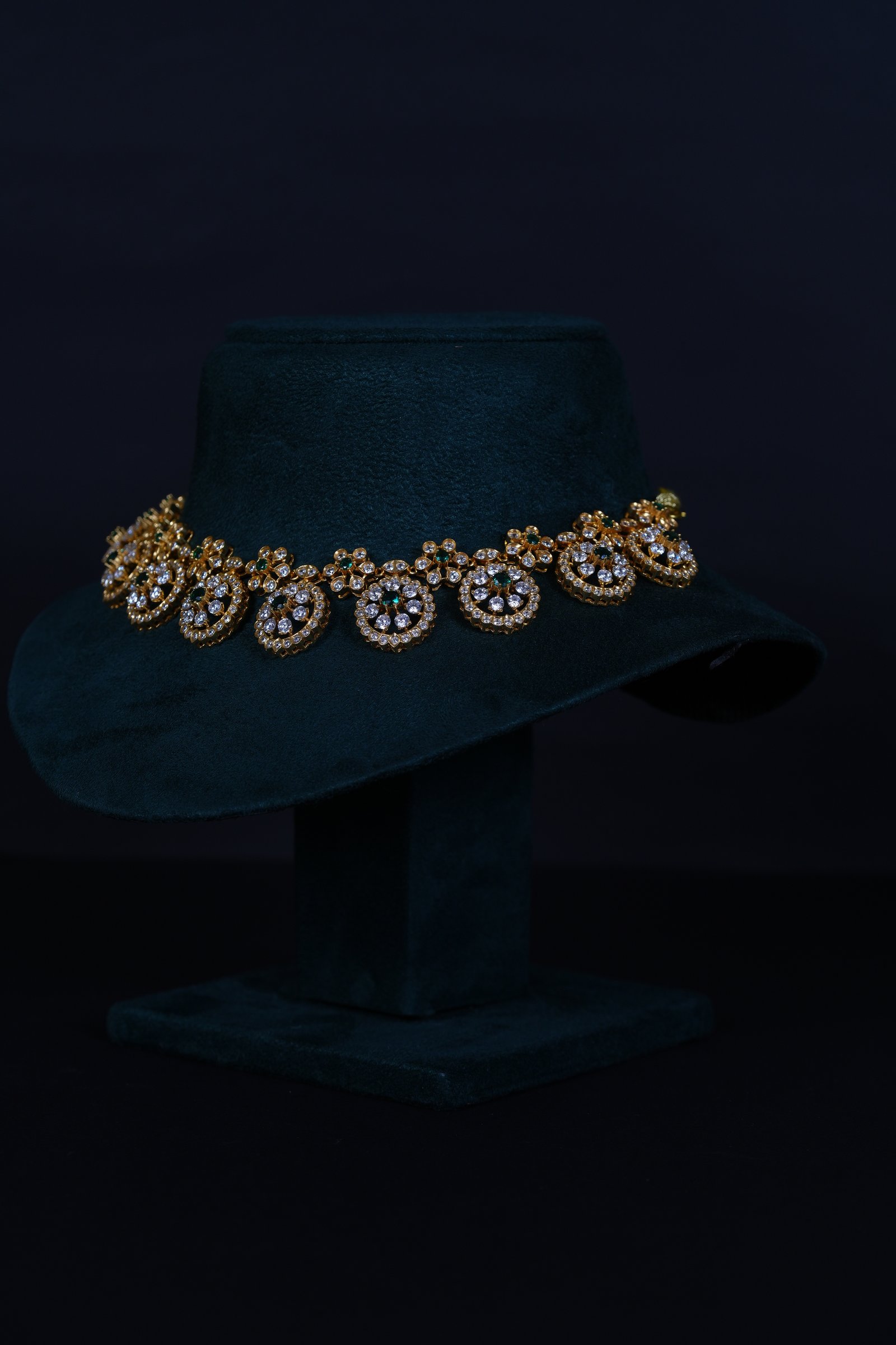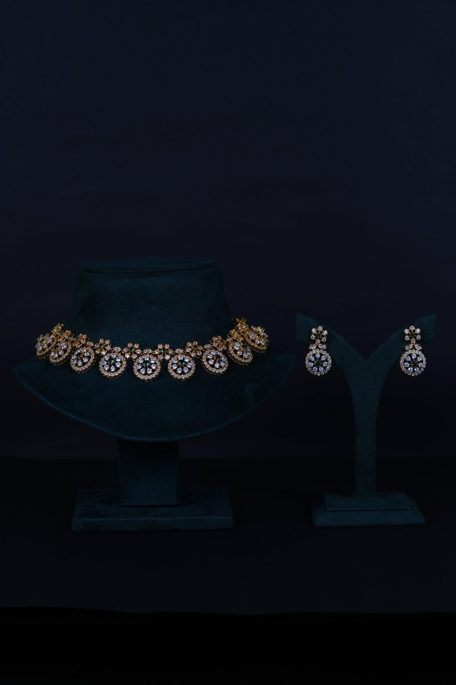 Royal Bottu American Diamond necklace set crafted in 92.5 sterling silver. A timeless traditional design enhanced with brilliant AD sparkle, perfect for weddings and festive occasions.